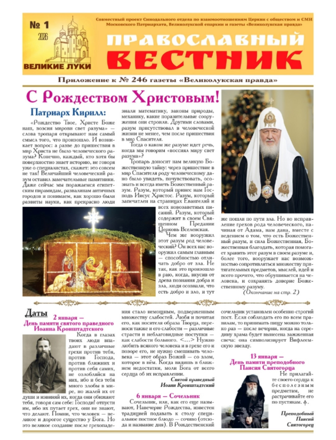Печатное издание "Православный вестник" (редактор Л. Васина, выпускается совместно Синодальным отделом ВЦО и СМИ, Великолукской епархией и редакцией городской газеты "Великолукская правда").